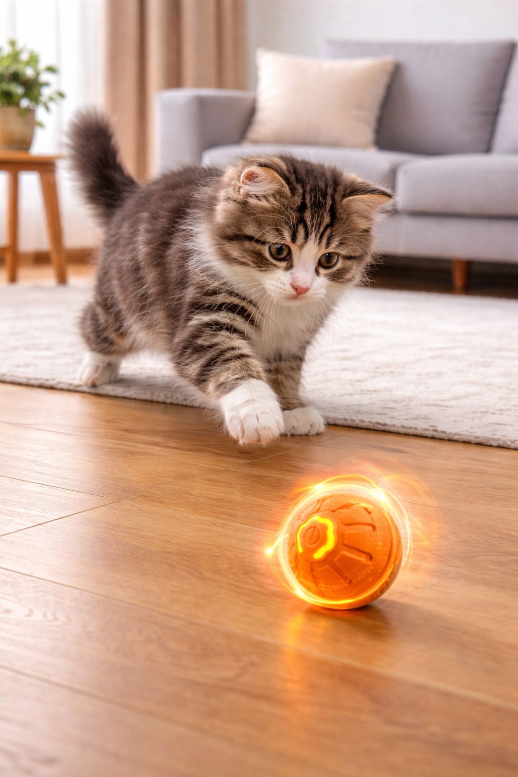 Esta pelota interactiva vibra y emite luces para captar al instante la atención de perros y gatos, estimulando su instinto de juego y manteniéndolos activos por más tiempo.