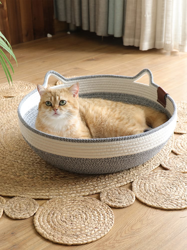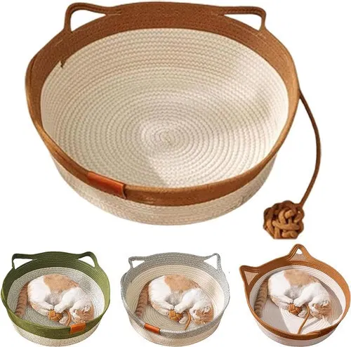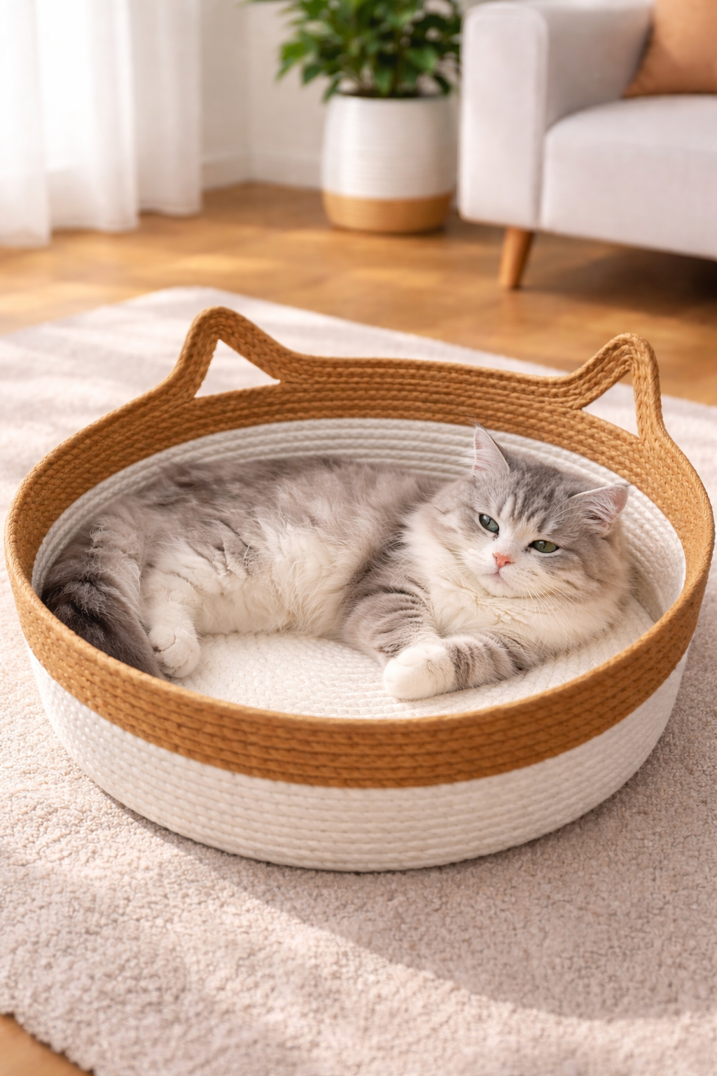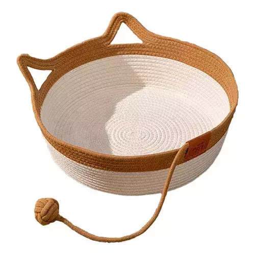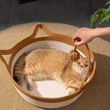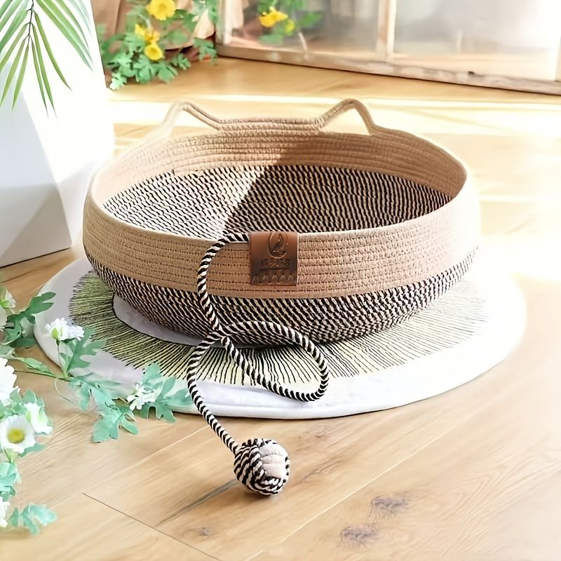Esta camita para gatos está confeccionada en algodón tejido, suave y resistente, pensada para que tu felino tenga su propio espacio de confort sin dejar de divertirse.